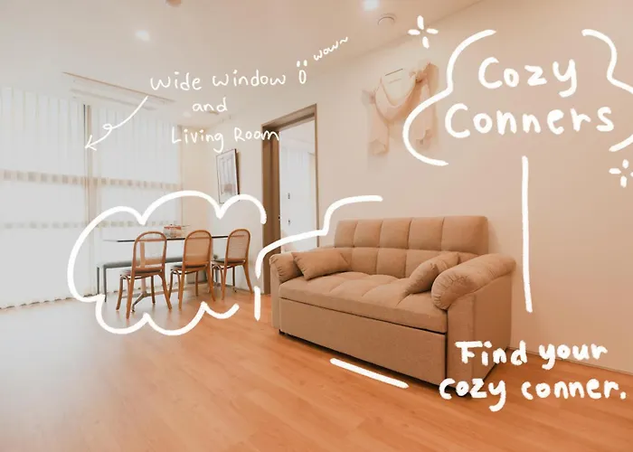 アパートから明洞ハイパーショッピングから4.8キロメートル離れた所で、景福宮から4.6キロメートルです。 この寝室2室のアパートは金大中図書館から歩いて10分で、地下鉄弘大入口駅すぐ近くの場所にあります。 Hongik Univ Station Wave Family Suite #1から2キロメートル離れた所のところに梨花女子大学博物館があります。